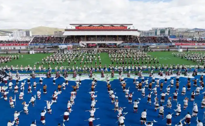 60年來,在黨中央親切關(guān)懷、西藏自治區(qū)黨委堅強領(lǐng)導(dǎo)及對口支援省市和企業(yè)無私援助下,那曲各項事業(yè)取得全方位進步與歷史性成就。開幕式文藝演出以“馬”文化為核心,分三大篇章展開,四川、青海等地馬術(shù)表演隊與本地隊伍共展精湛技藝;千人共舞《禮贊甲子》、器樂合奏《風(fēng)從浙江來·樂在那曲揚》等節(jié)目,生動呈現(xiàn)西藏自治區(qū)成立60年輝煌成就與對口支援成果。